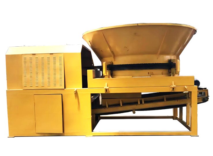 圆盘式木材破碎机,旋转式树根破碎机)该机结构主要包含机架,机壳,动力系统,波乐系统,电器系统。以及在料箱驱动装置带动下转动的旋转料箱,在转子驱动装置带动下转动的转子,转子位于旋转料箱的下方,进料口与进料斗中心相对偏置。圆盘式树根破碎机工作原理大型木材综合破碎机工作时,由电机带动转子进行高速旋装,同时进料斗也在电机的带动下进行缓得的旋转,物料经抓机投放进料斗,料斗在旋转的同时内壁上的拨料货会将物料均匀的拔到转子上,高速旋转的转子碰到物料经由转子上刀片的切削和斯扯实现物料的初步破碎,进过初步破碎的物料无在自身重力和转子冲击力的作用下掉在破碎路内的筛网上,符合要求的物料会通过筛网排出,而不符合要求的会在破碎腔内进行二次甚至三次的破碎加工直至符合要求。